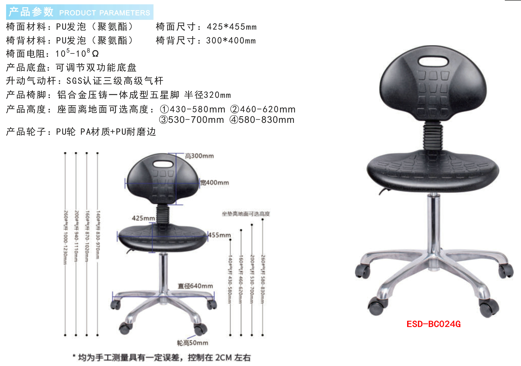 防静电实验室PU发泡工业椅