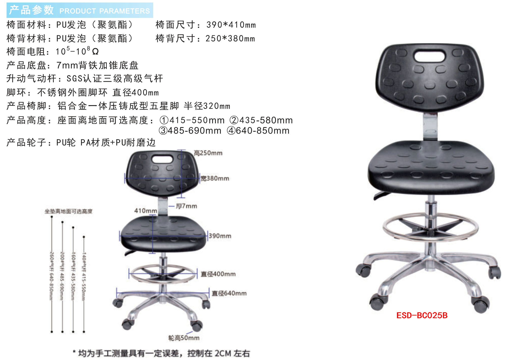 防静电实验室PU发泡工业椅