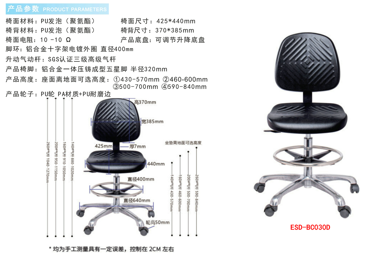 防静电实验室PU发泡工业椅