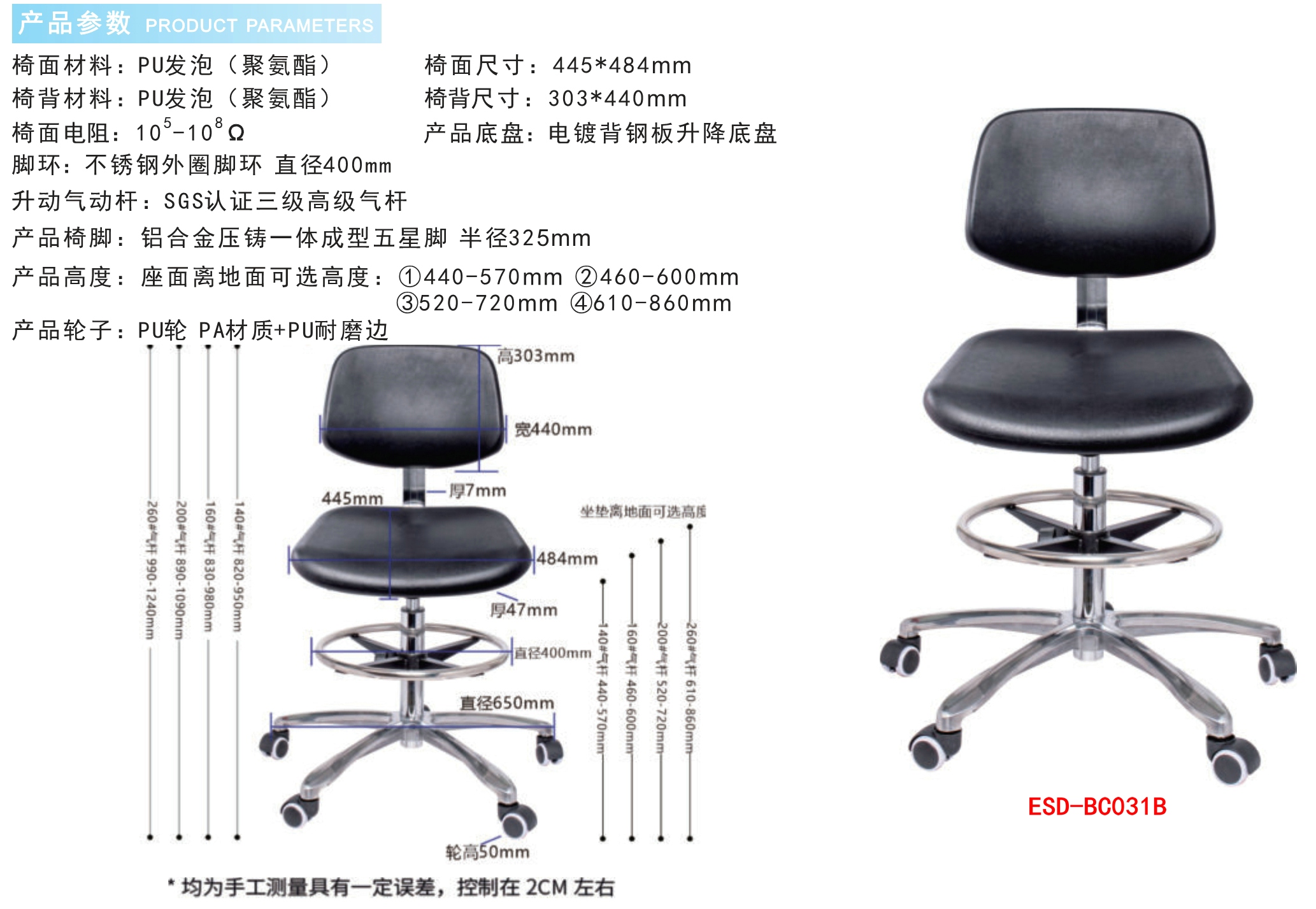 防静电实验室PU发泡工业椅