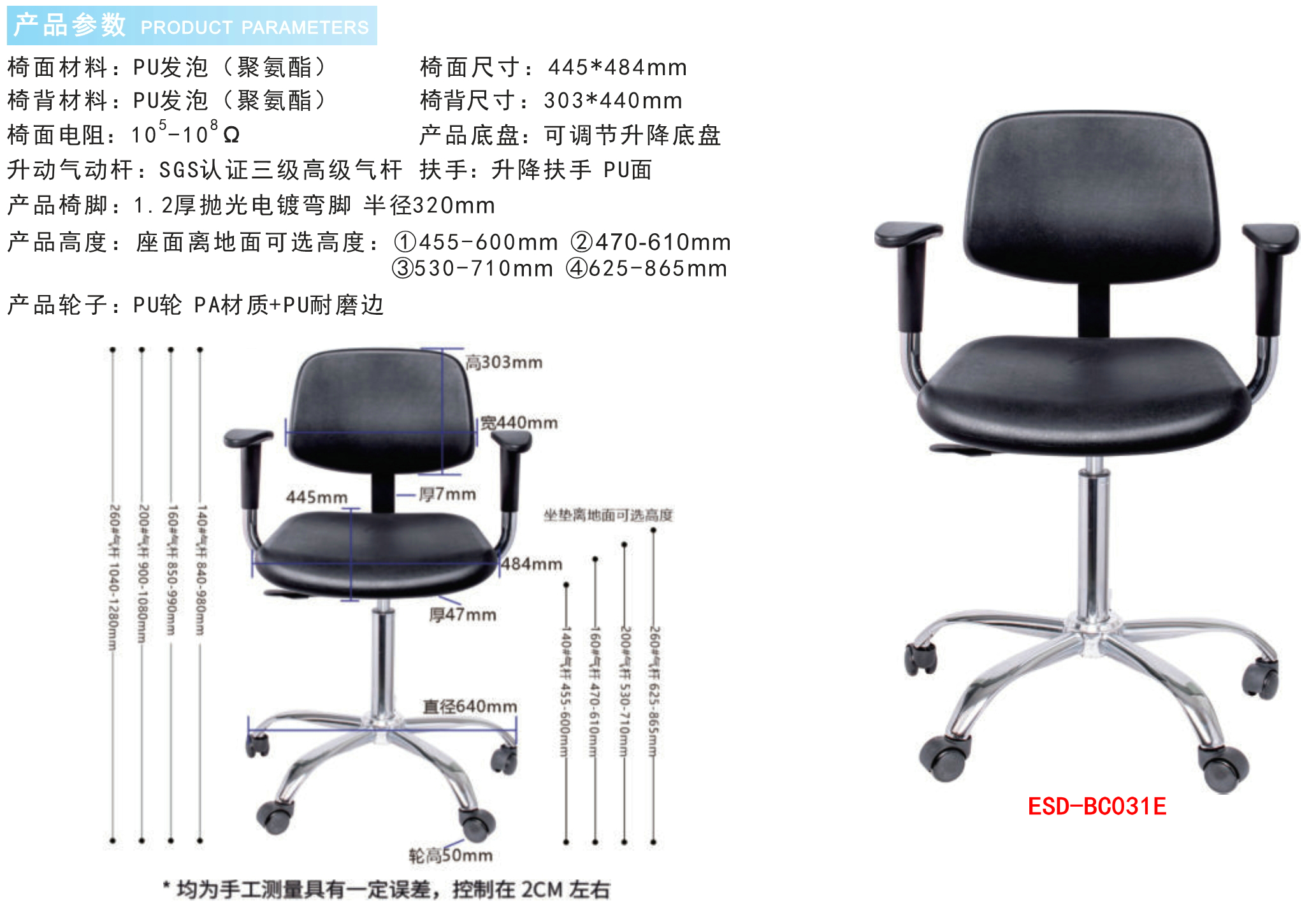 防静电实验室PU发泡工业椅