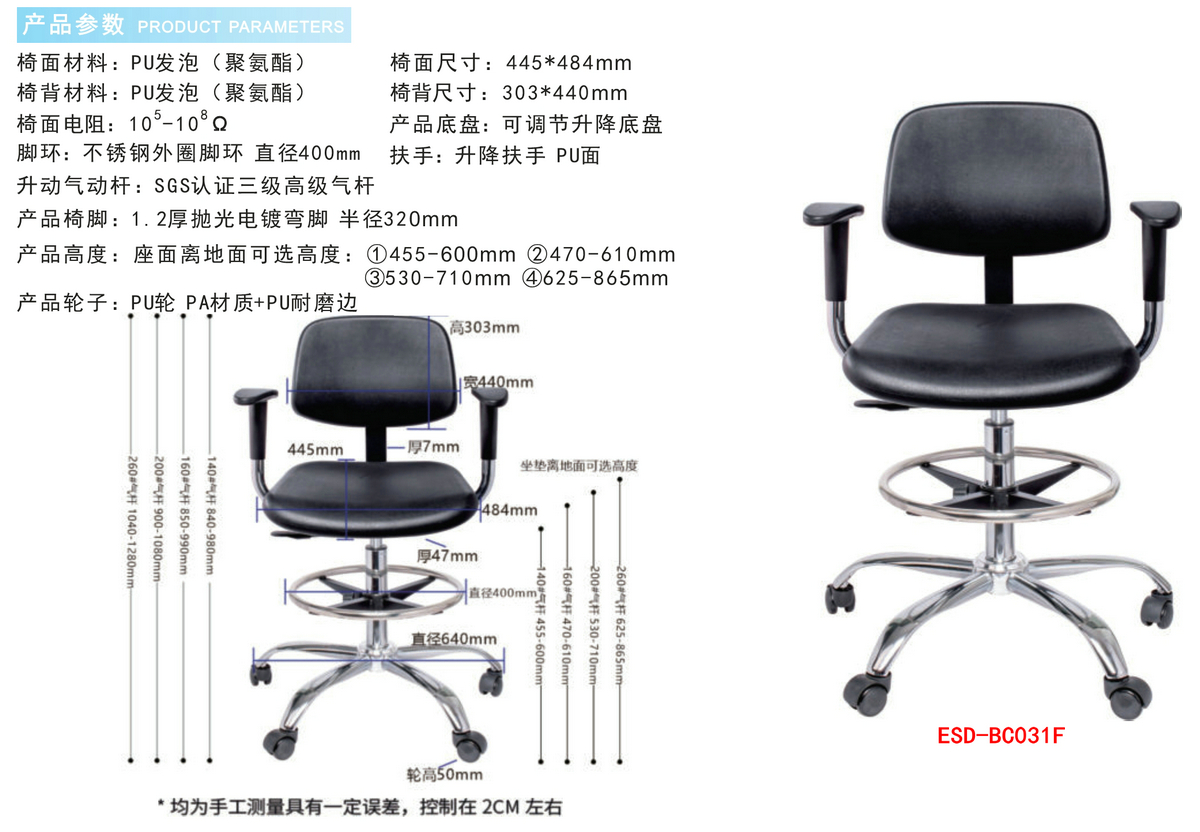防静电实验室PU发泡工业椅