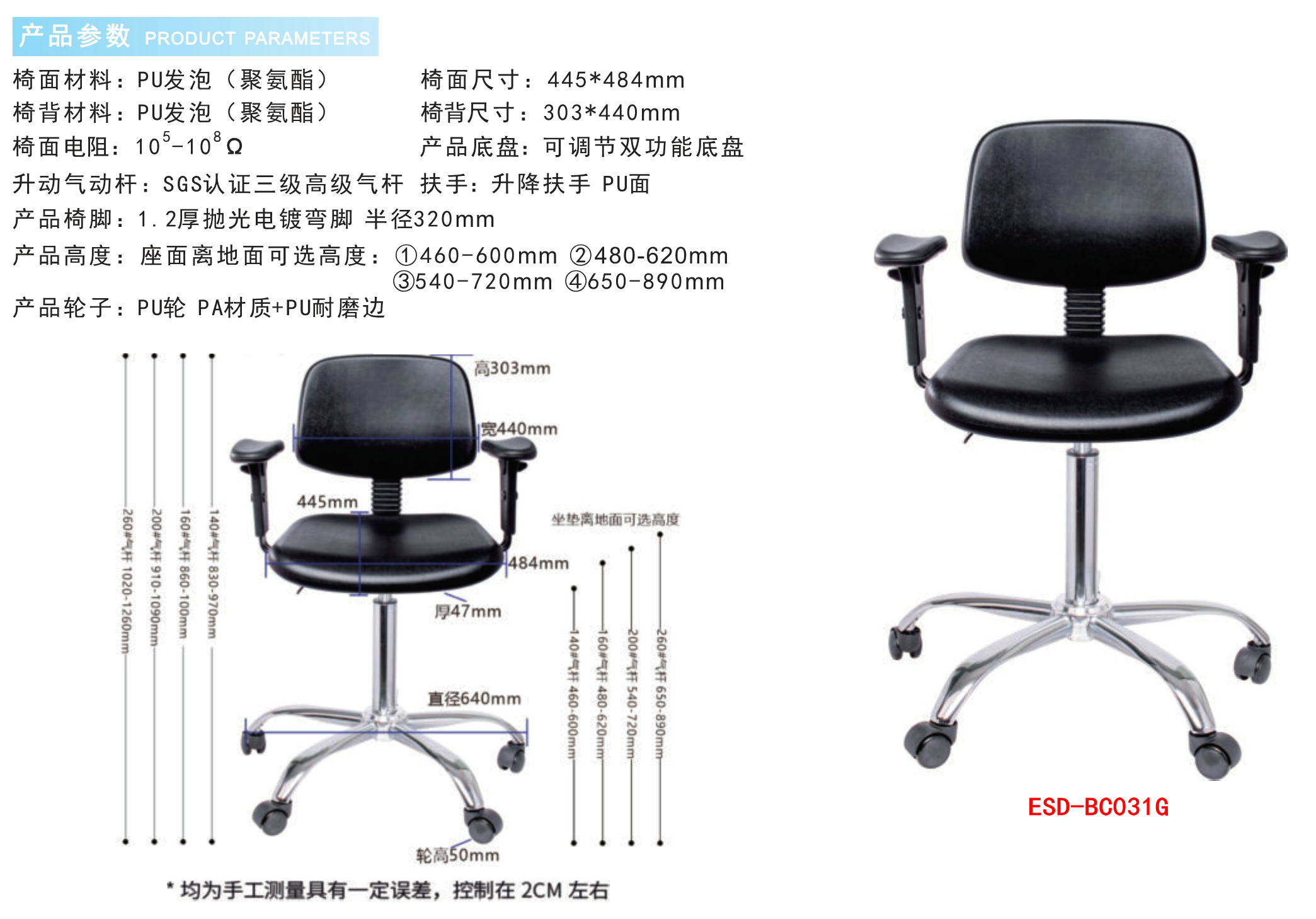 防静电实验室PU发泡工业椅