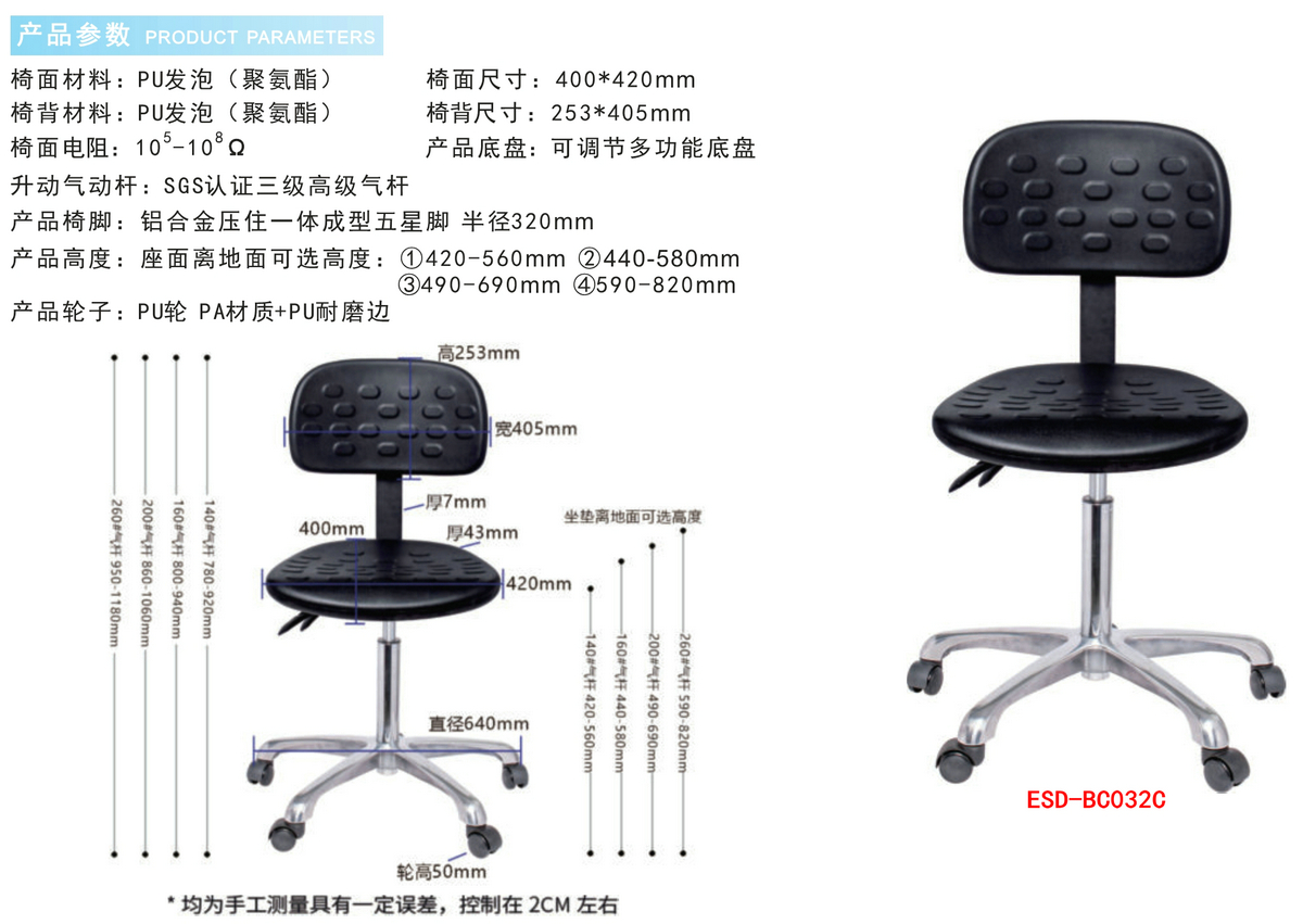 防静电实验室PU发泡工业椅