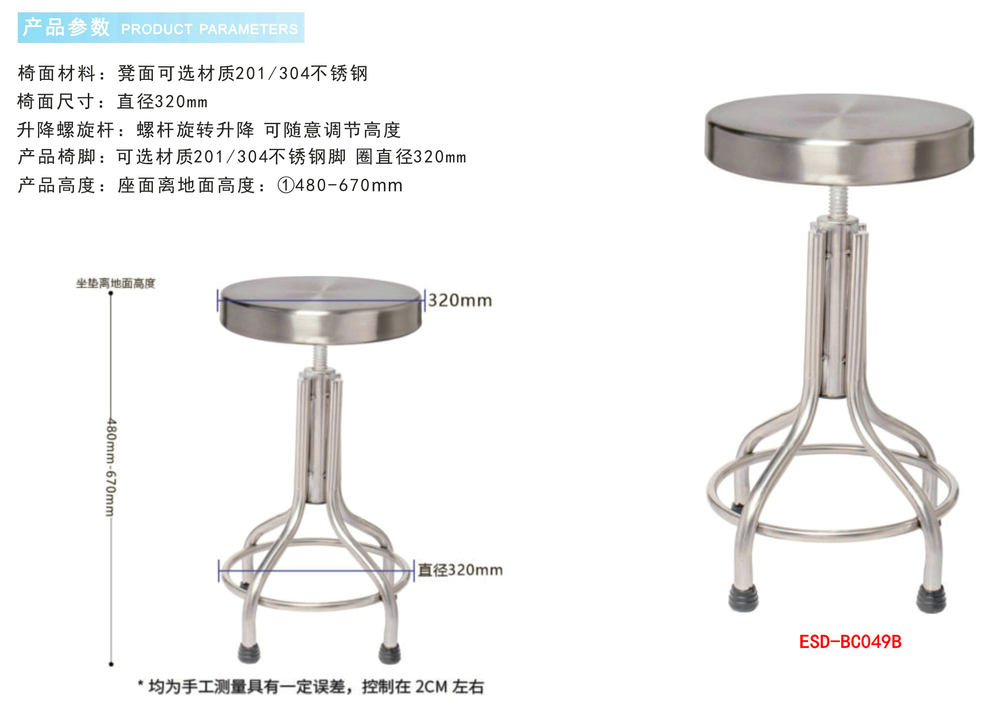 产品名称:防静电实验室不锈钢工业椅
