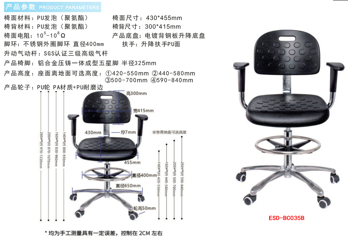 防静电实验室PU发泡工业椅