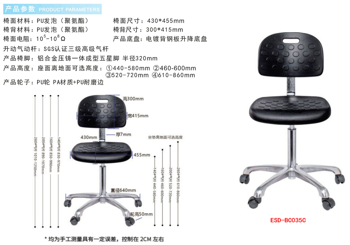 防静电实验室PU发泡工业椅