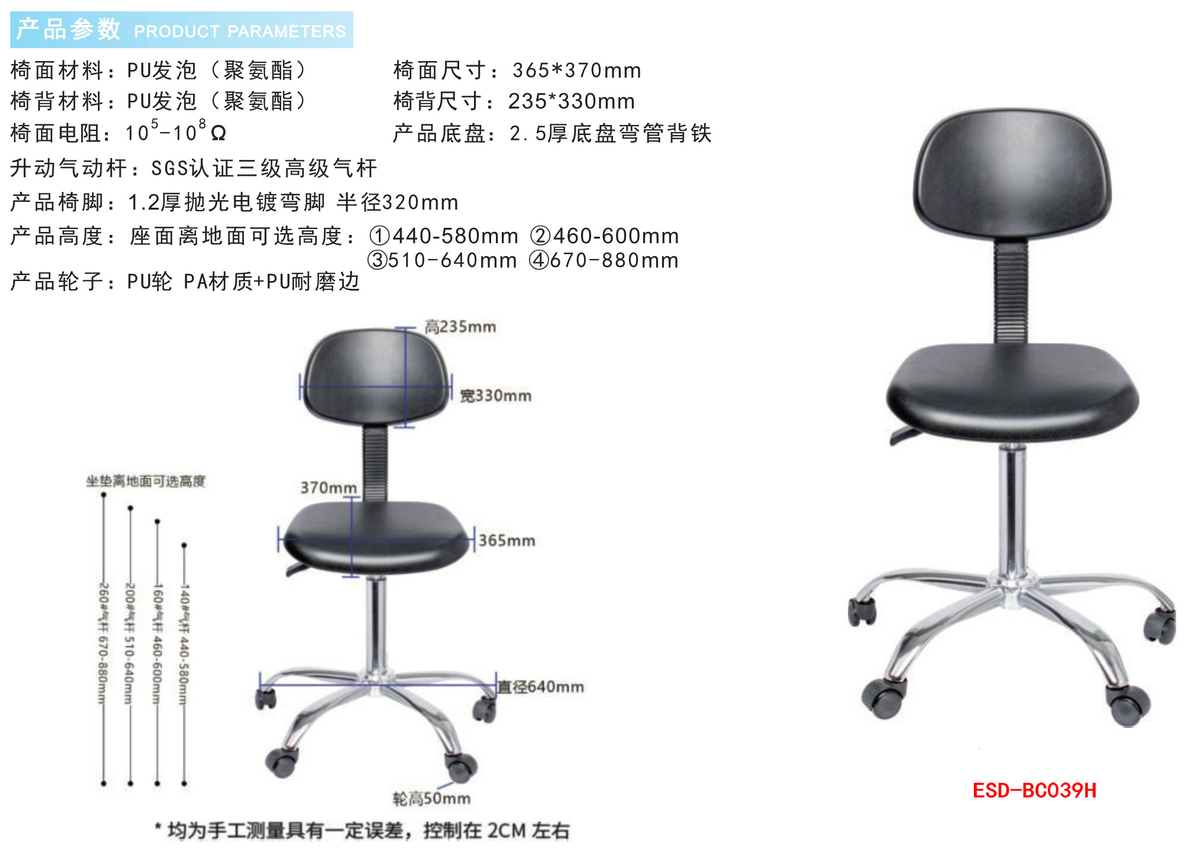 防静电实验室PU发泡工业椅