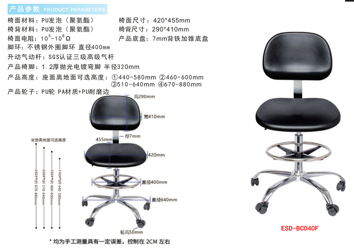 防静电实验室PU发泡工业椅