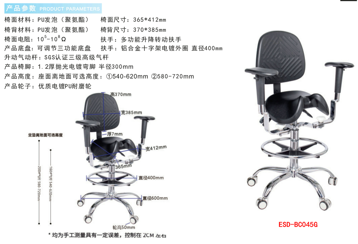 防静电实验室PU发泡工业马鞍椅