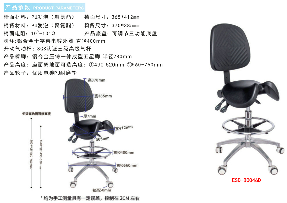 防静电实验室PU发泡工业马鞍椅