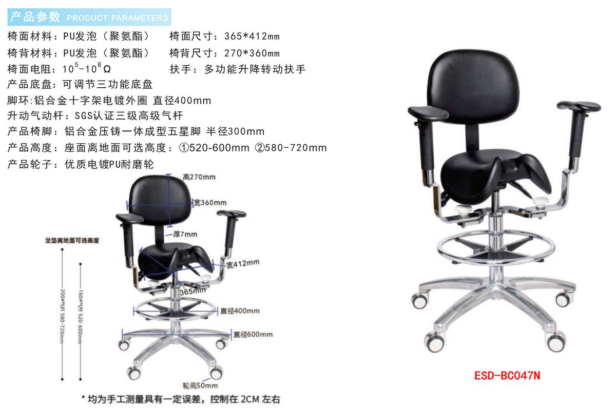 防静电实验室PU发泡工业马鞍椅