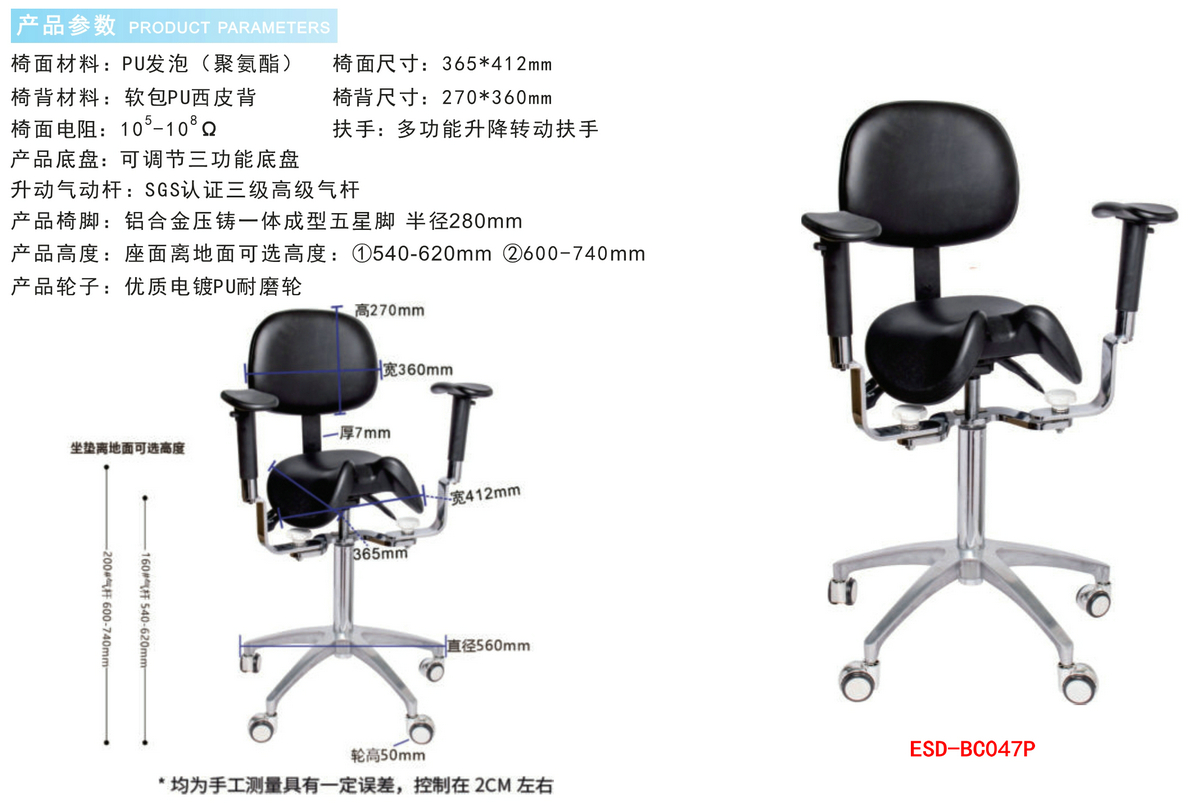 防静电实验室PU发泡工业马鞍椅