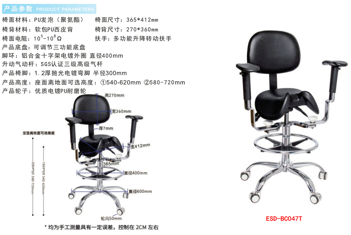 防静电实验室PU发泡工业马鞍椅