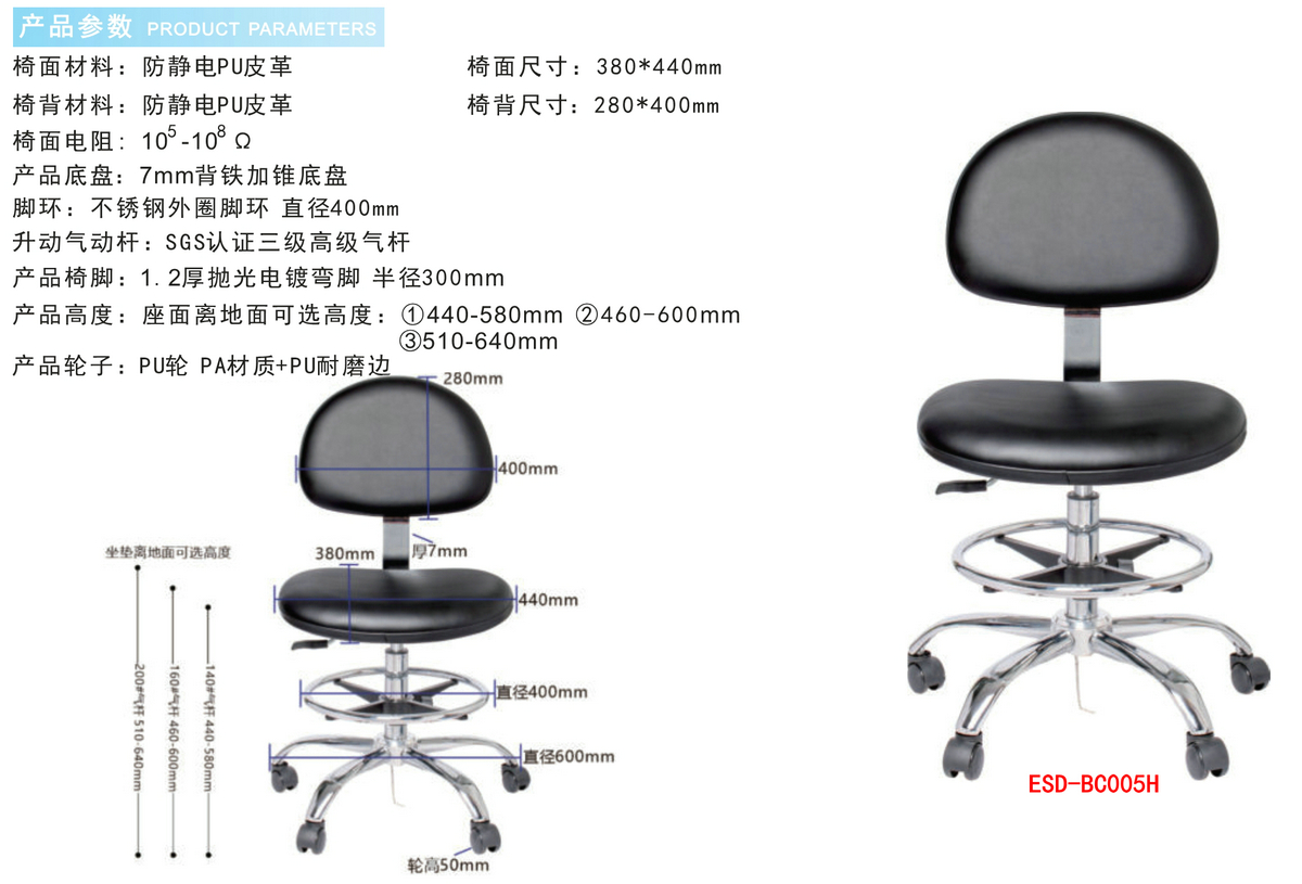 实验室PU皮革工业椅