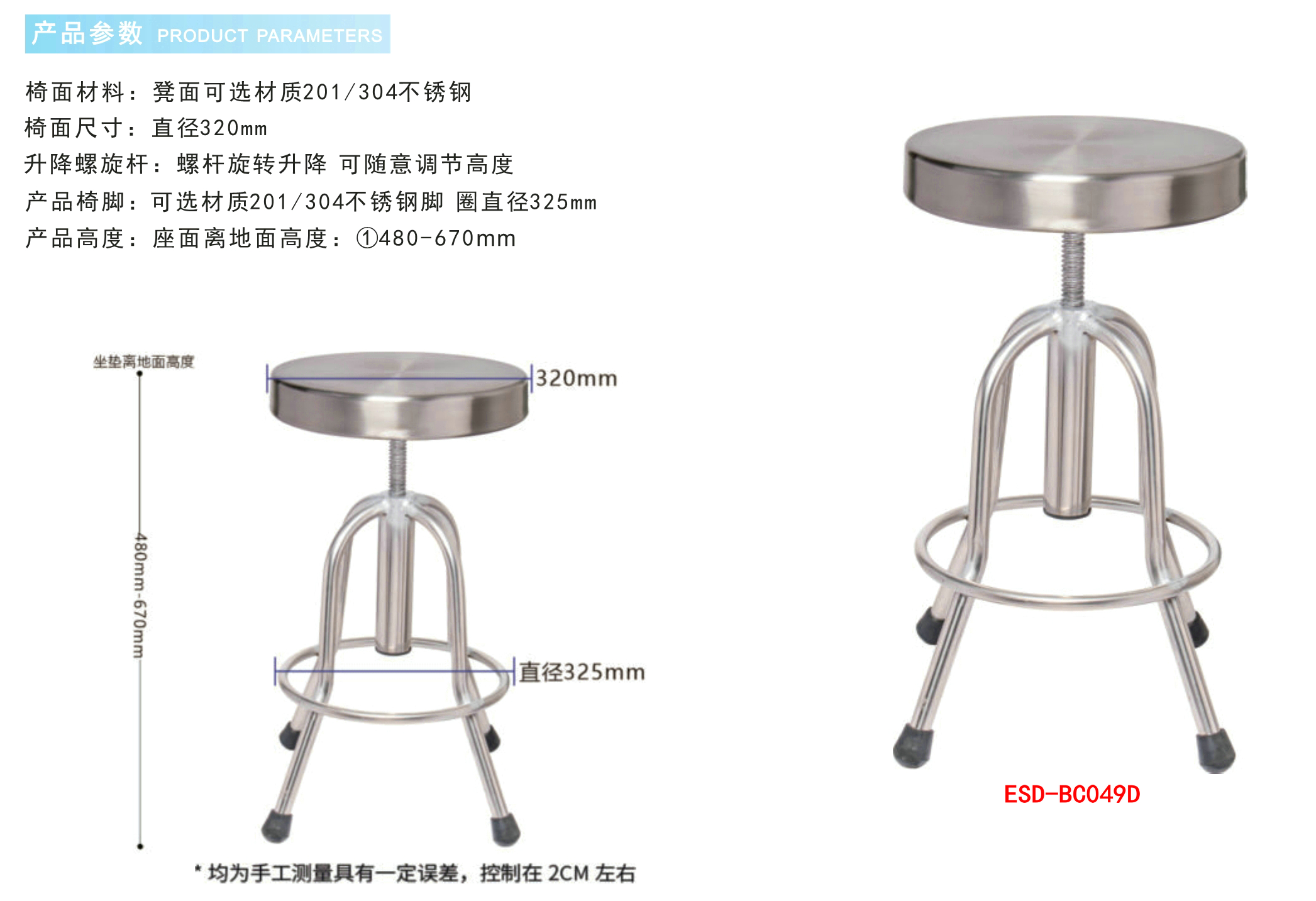 产品名称:防静电实验室不锈钢工业椅